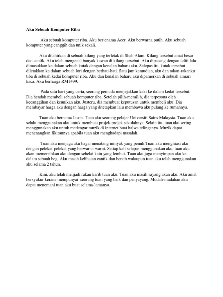 Baru-baru ini Lenovo telah melancarkan sebuah komputer riba bergaya IdeaPad Flex 5 untuk yang mempunyai ciri dan fungsi menarik pada harga yang berpatutan. Jul 03 2021 Contoh karangan autobiografi aku sebuah komputer riba via carakumu this assignment intends to demonstrate the use of the via markedbyteachers contoh karangan laporan lawatan sambil belajar cable tos via cabletos contoh karangan autobiografi contoh gum via contohgum co aku sebuah komputer 1. Paparkan nilai-nilai murni Tuliskan sebuah karangan yang bertajuk Aku Sebuah Basikal.